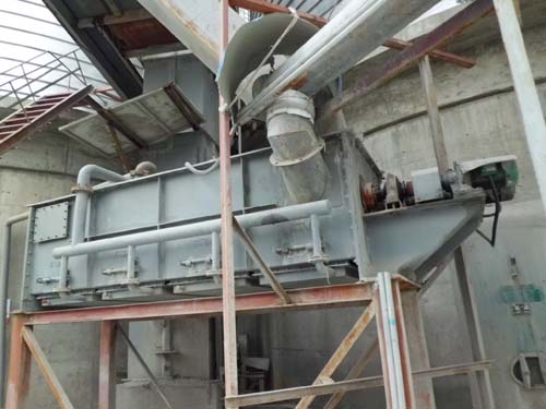 在裝有攪拌軸、葉片攪拌箱體底部,裝備帶有透氣層的充氣箱。充氣箱由羅茨風機鼓入高壓空氣、物料進入攪拌箱后,受攪拌箱底部充氣箱的氣化作用而流態化,之后由攪拌箱中攪拌軸葉片的作用而充氣攪拌,由于出料位置在攪拌箱的上部,經攪拌后的物料從出料口溢出。出料口以下的物料則與后續的進入攪拌箱內的物料再進行充分攪拌后經出料口溢出。由于攪拌箱內物料充分流態化,加上物料的溢流式結構,物料中的渣子將沉積在攪拌箱底部。待混料機工作到一定時間需停機時,從攪拌箱側面下部的清渣口清出。