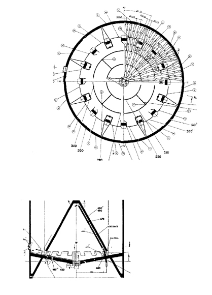 CP生料均化庫是我公司引進的德國BMH公司的一種新型生料均化庫,其特點電耗低、均化效果好。CP生料均化庫的均化原理是庫頂生料通過8條斜槽均勻布料,不同時期的生料在庫內呈橫向分布,庫底充氣系統設計更符合生料充氣后的流動性,呈放射狀斜向分布,環形區一般分8個區,每隔5分鐘輪流充氣,充氣區生料因松動及氣流的引導卸入中心區,庫內不同層的生料豎向切割下料實現生料的均化,不同時間的生料進入中心區后再進行氣體強烈混合均化,從而達到理想的均化效果。